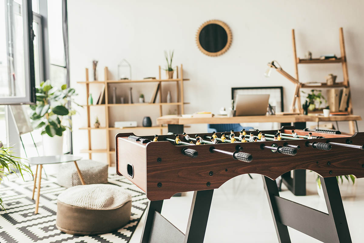 Nearby break areas give people space to pause, reset, or continue conversations informally between longer sessions.